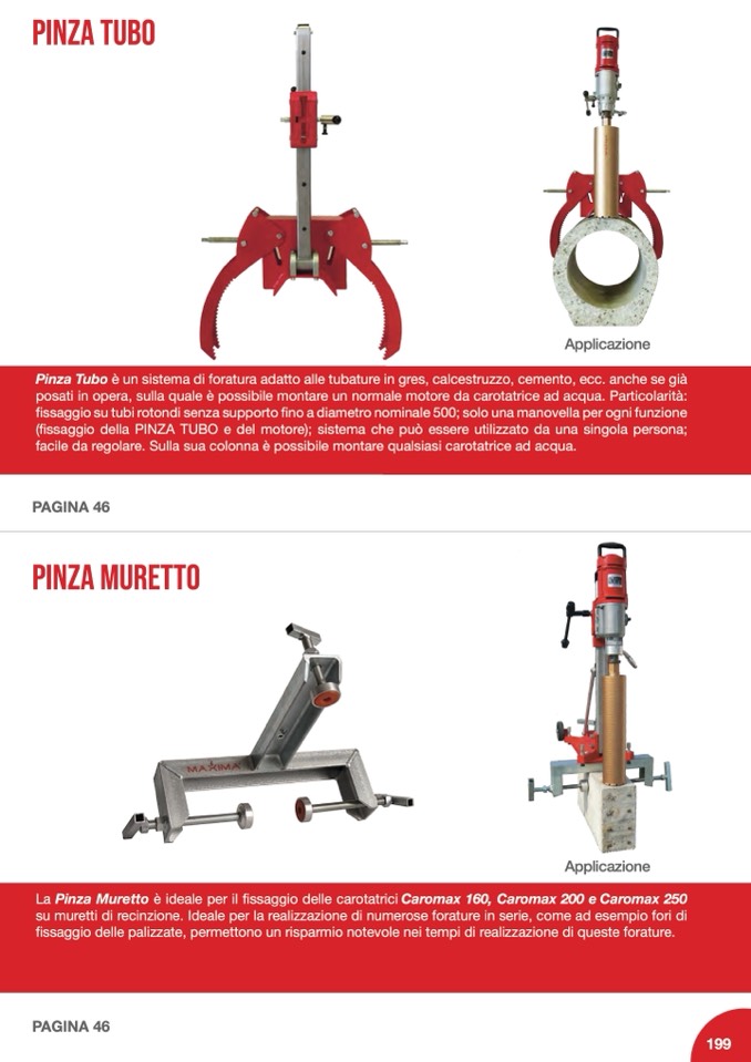 La Pinza Muretto è ideale per il fissaggio delle carotatrici Caromax 160, Caromax 200 e Caromax 250