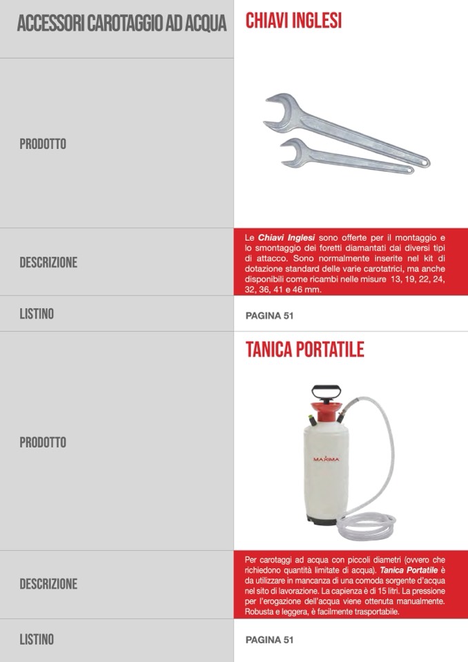 ACCESSORI CAROTAGGIO aD ACQUA