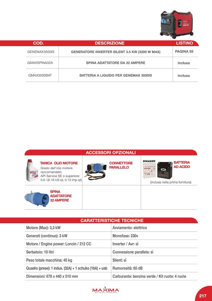 GENERATORE INVERTER SILENT 3.5 KW (3200 W MAX)
