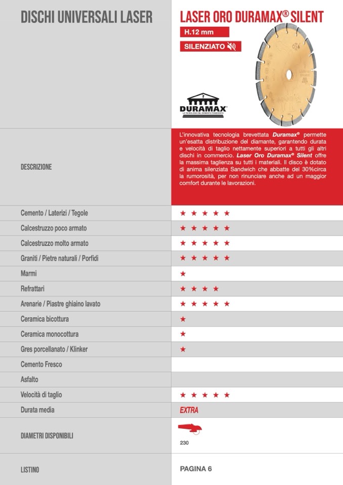 la massima taglienza su tutti i materiali. Il disco è dotato