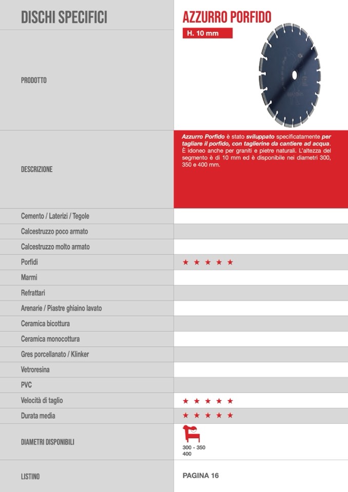 È idoneo anche per graniti e pietre naturali. L’altezza del