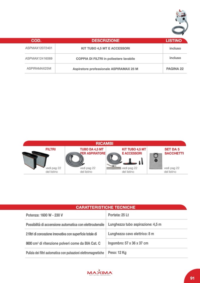 Aspiratore professionale ASPIRAMAX 25 M