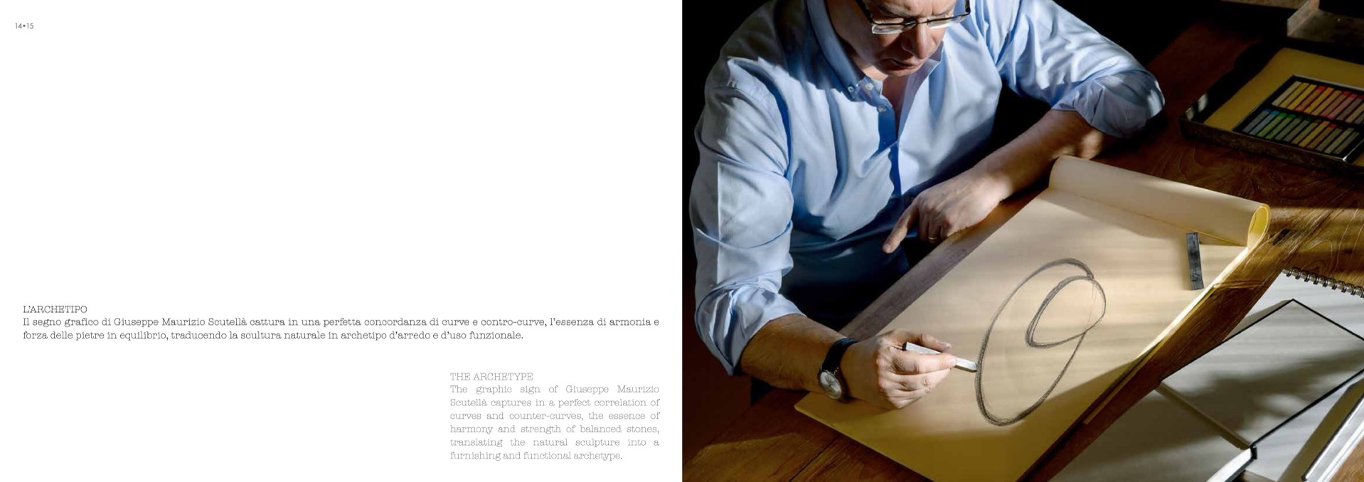 Il segno grafico di Giuseppe Maurizio Scutellà cattura in una perfetta concordanza di curve e contro-curve, l’essenza di armonia e