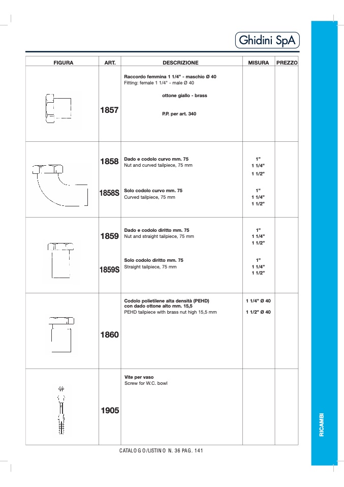C.P. brass waste for art. 360 - 365 - 369 - 623