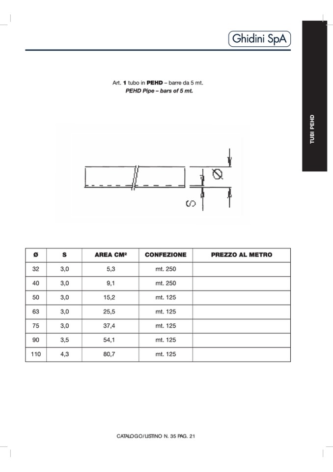 Art. 1 tubo in PEHD – barre da 5 mt.