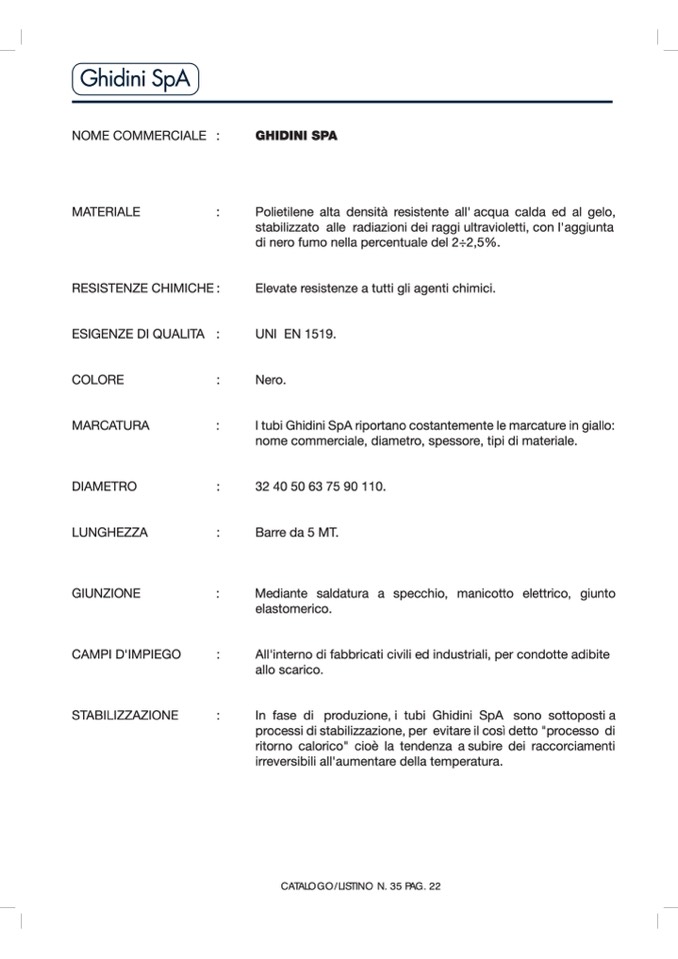 I tubi Ghidini SpA riportano costantemente le marcature in giallo: