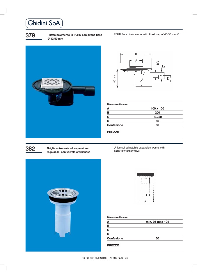 PEHD floor drain waste, with fixed trap of 40/50 mm Ø