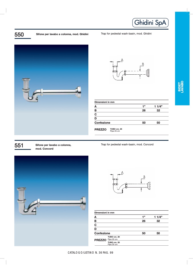 Trap for pedestal wash-basin, mod. Ghidini