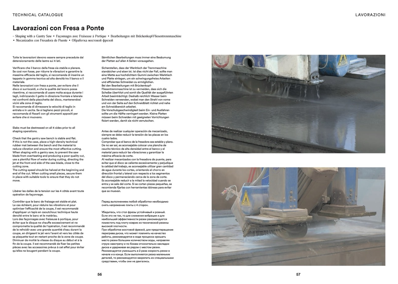 – Shaping with a Gantry Saw • Façonnages avec Fraiseuse à Portique • Bearbeitungen mit Brückenkopf-Fliesentrennmaschine