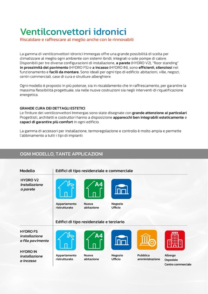La gamma di ventilconvettori idronici Immergas offre una grande possibilit