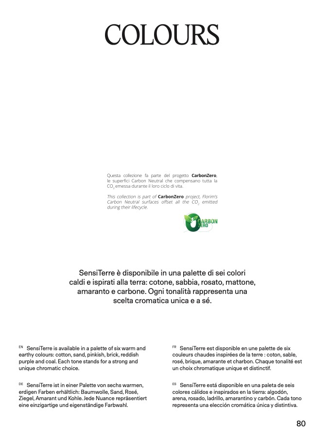 SensiTerre è disponibile in una palette di sei colori