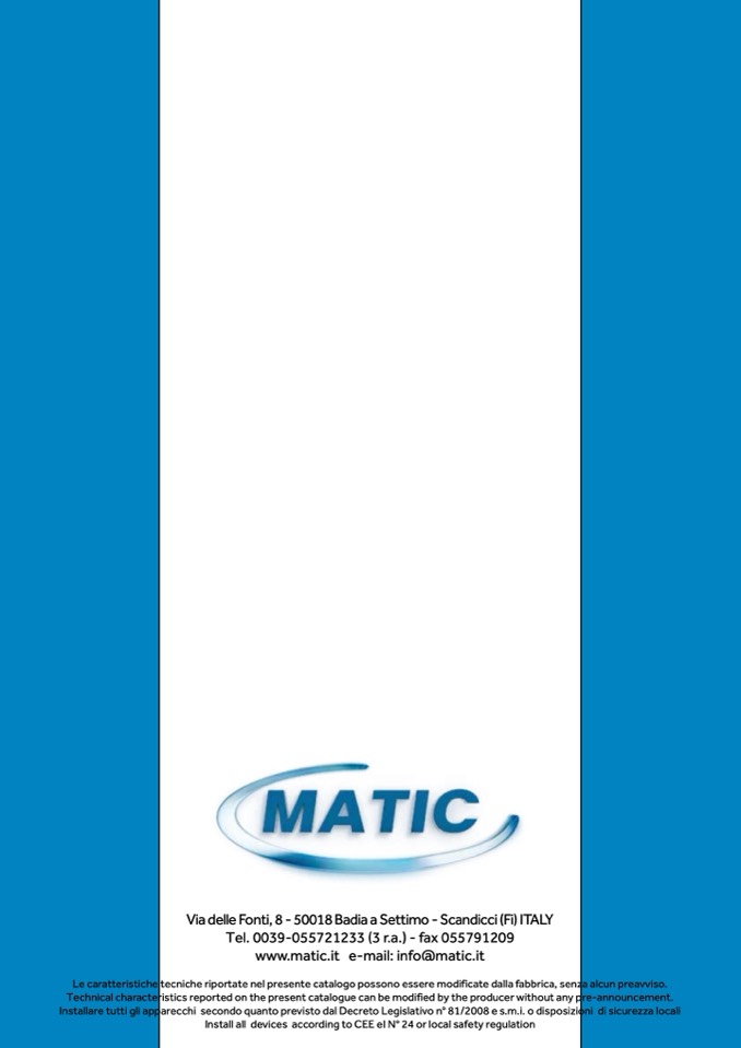 Technical characteristics reported on the present catalogue can be modified by the producer without any pre-announcement.
