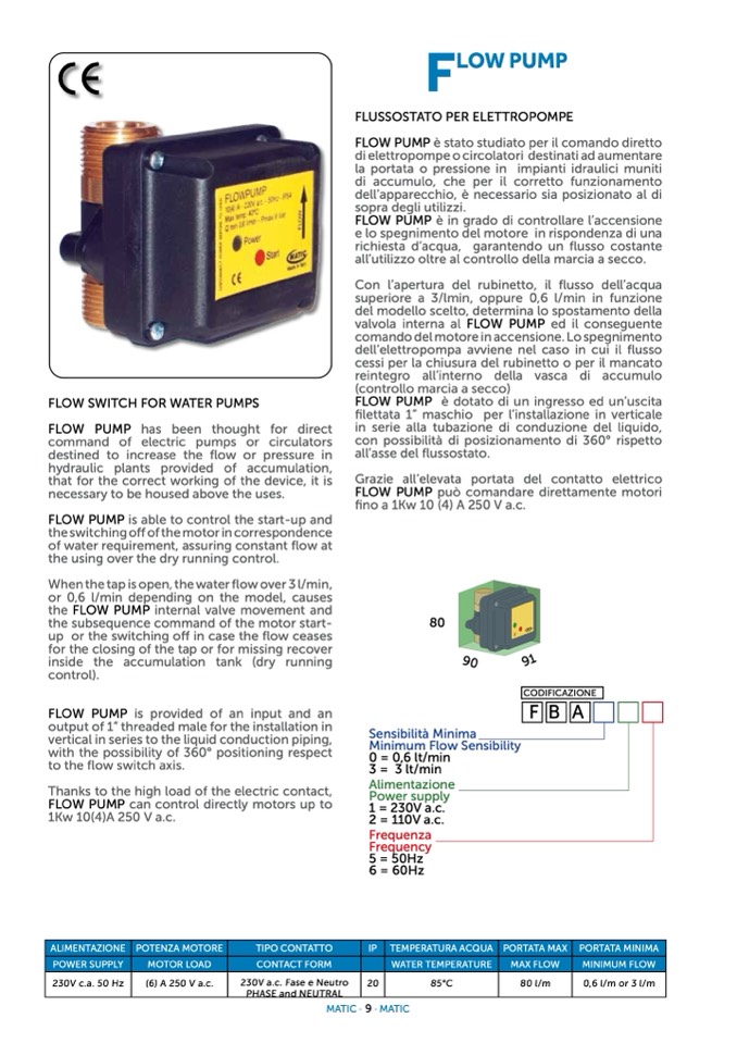FLOW PUMP è dotato di un ingresso ed un’uscita