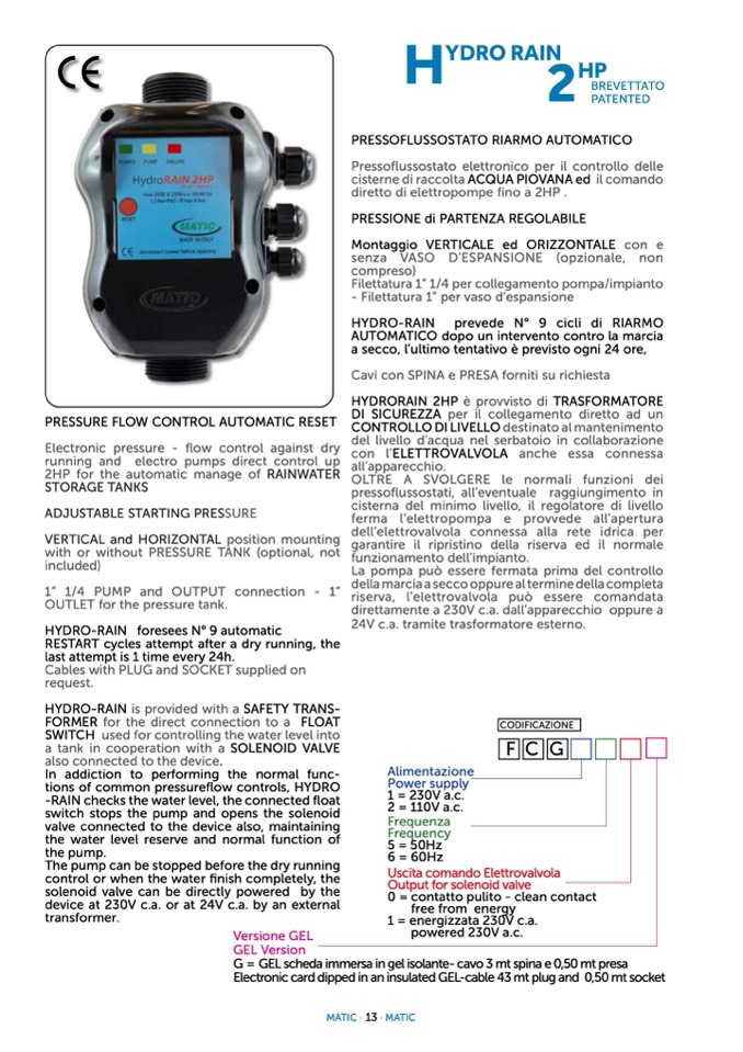 HYDRORAIN 2HP è provvisto di TRASFORMATORE