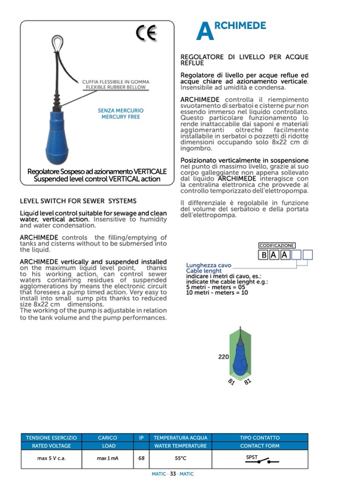 REGOLATORE DI LIVELLO PER ACQUE