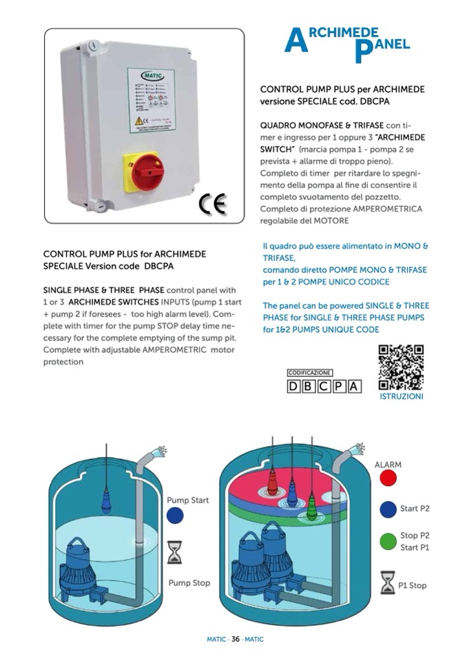 1 or 3 ARCHIMEDE SWITCHES INPUTS (pump 1 start