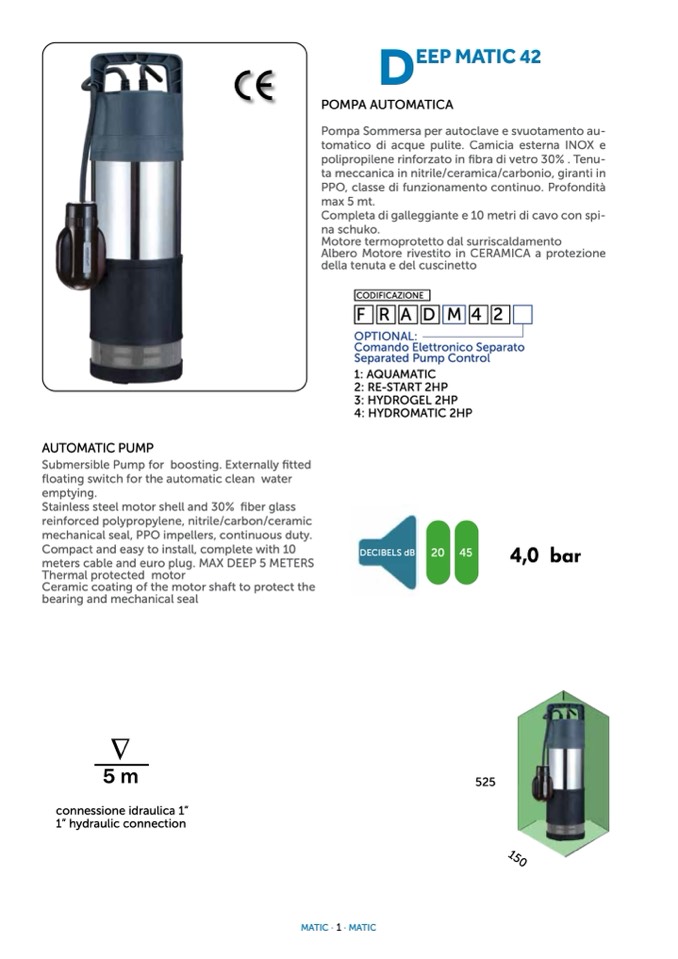meters cable and euro plug. MAX DEEP 5 METERS