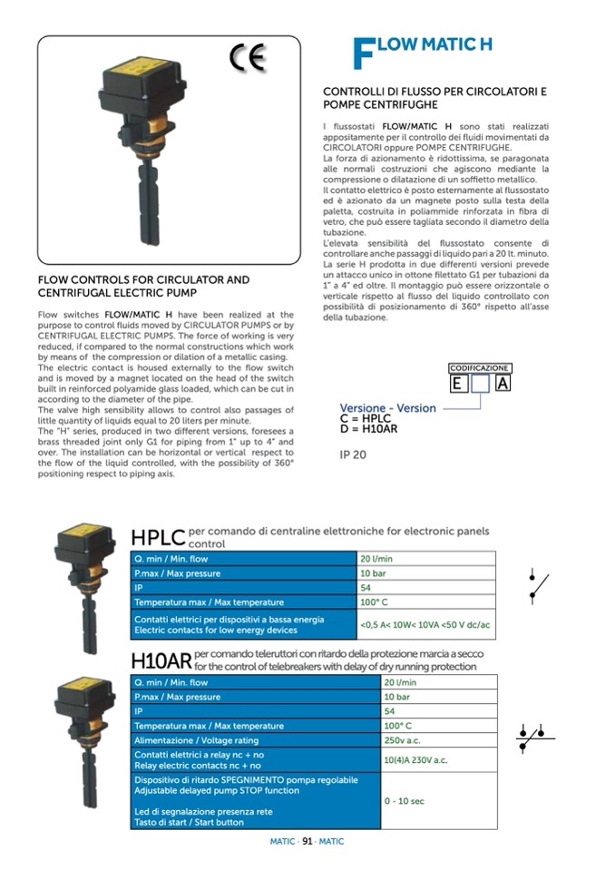 CONTROLLI DI FLUSSO PER CIRCOLATORI E