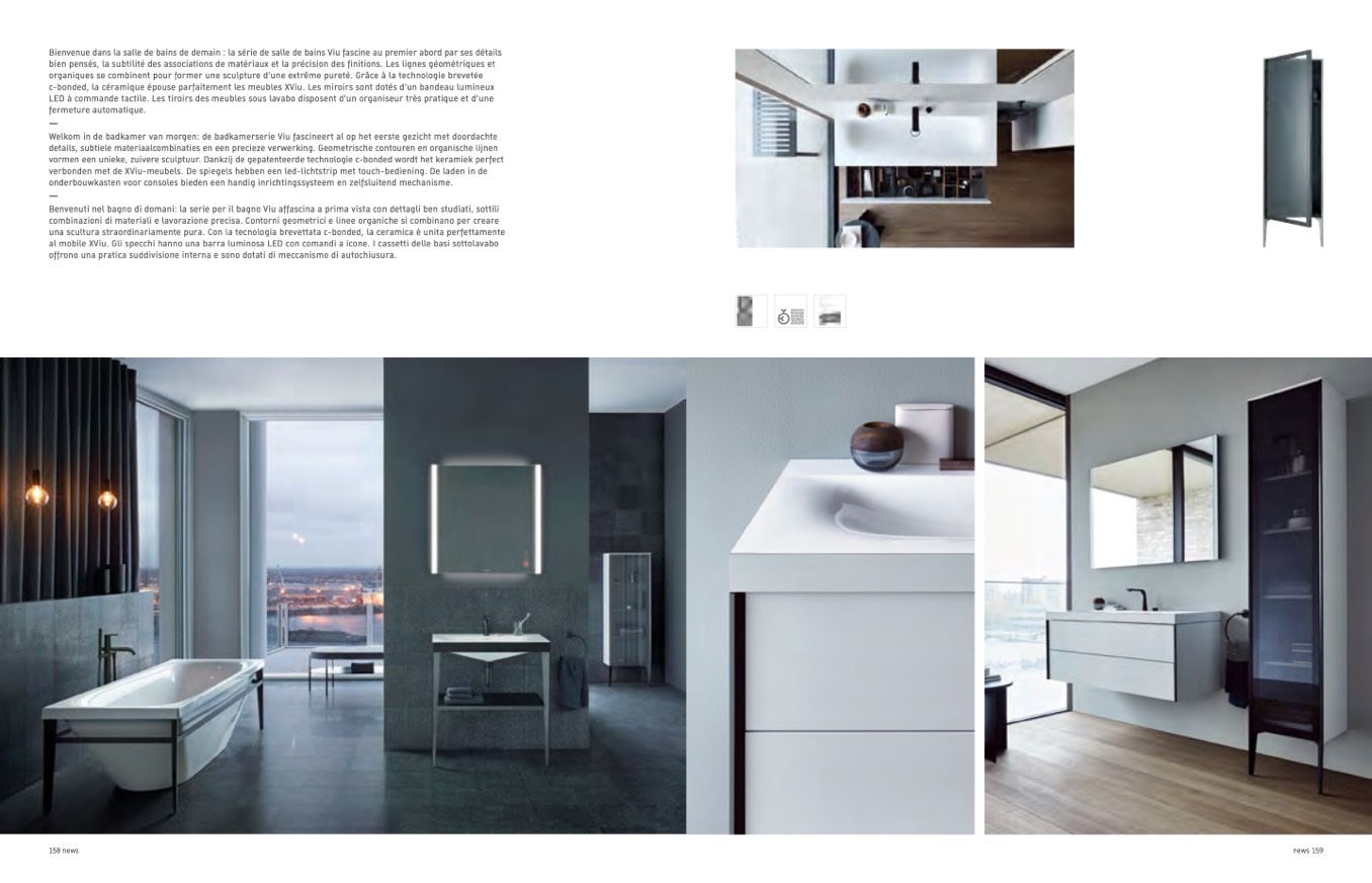 c-bonded, la céramique épouse parfaitement les meubles XViu. Les miroirs sont dotés d’un bandeau lumineux