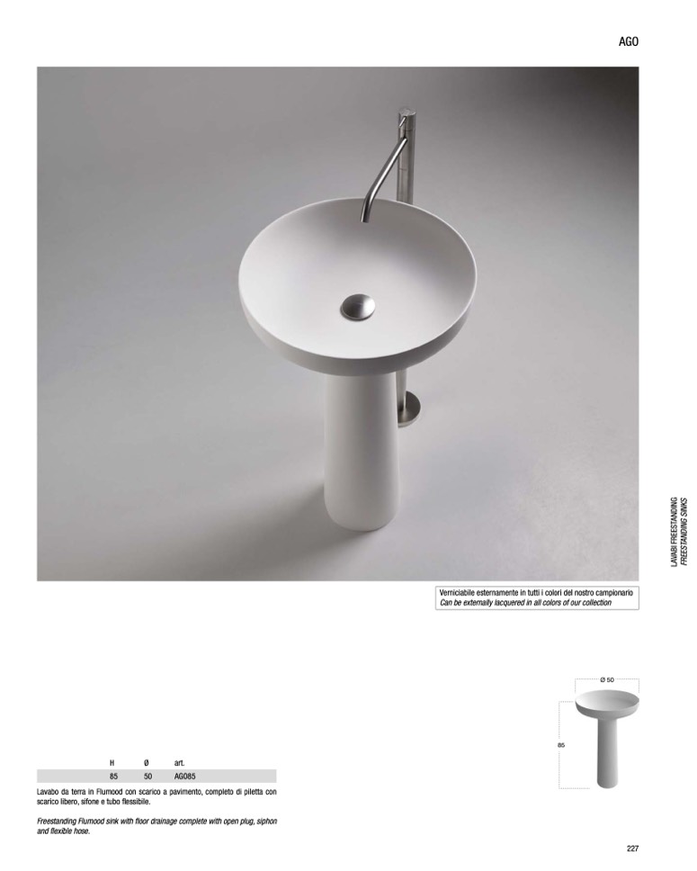 Freestanding Flumood sink with floor drainage complete with open plug, siphon