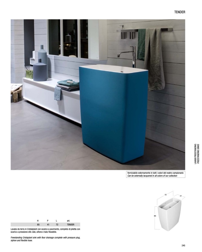 Freestanding Cristaplant sink with floor drainage complete with pressure plug,