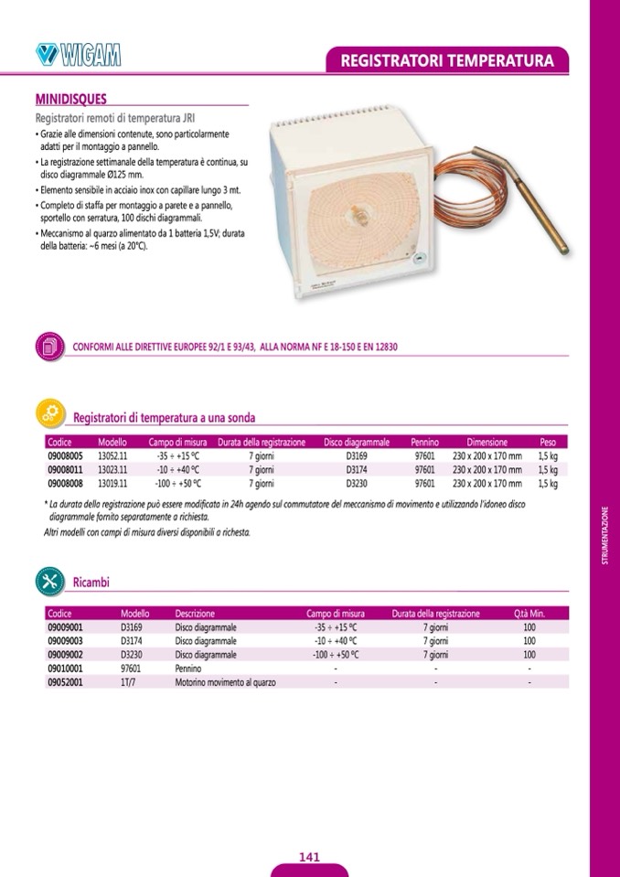 CONFORMI ALLE DIRETTIVE EUROPEE 92/1 E 93/43, ALLA NORMA NF E 18-150 E EN 12830