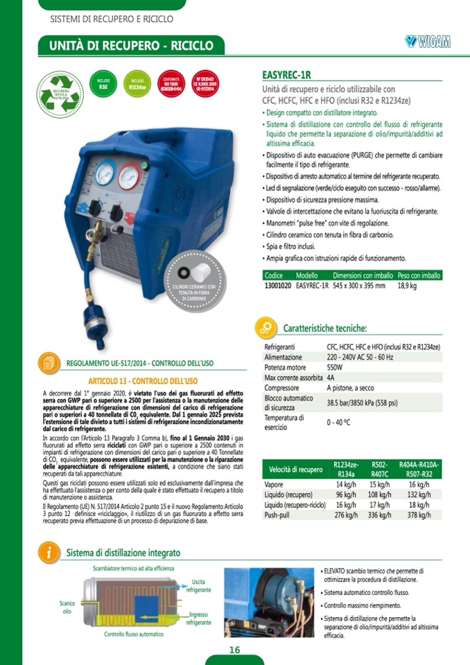 • Dispositivo di arresto automatico al termine del refrigerante recuperato.