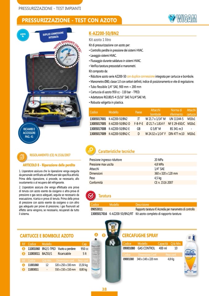 • Riduttore azoto serie AZ200-50 con duplice connessione integrata per cartucce e bombole.