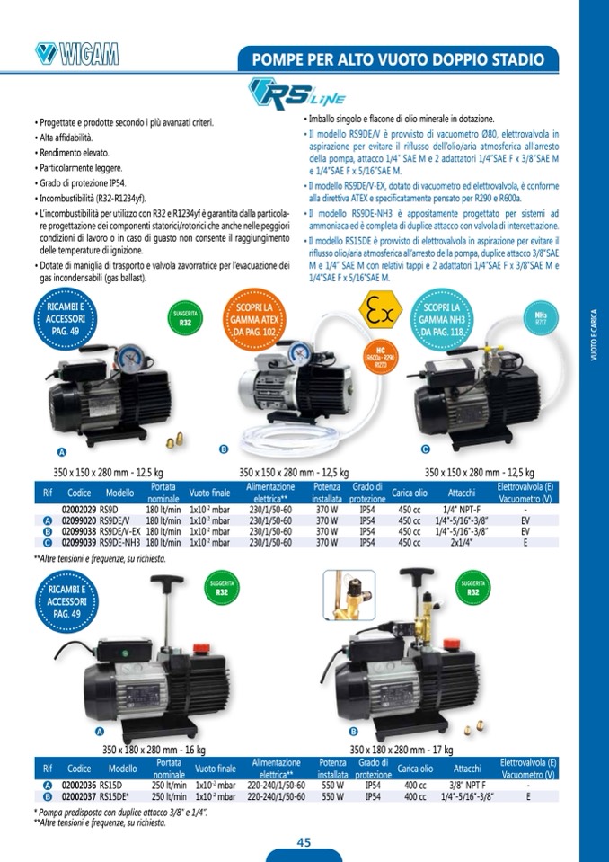 • Il modello RS9DE/V-EX, dotato di vacuometro ed elettrovalvola, è conforme