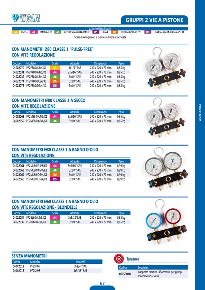CON MANOMETRI Ø80 CLASSE 1 A BAGNO D’OLIO