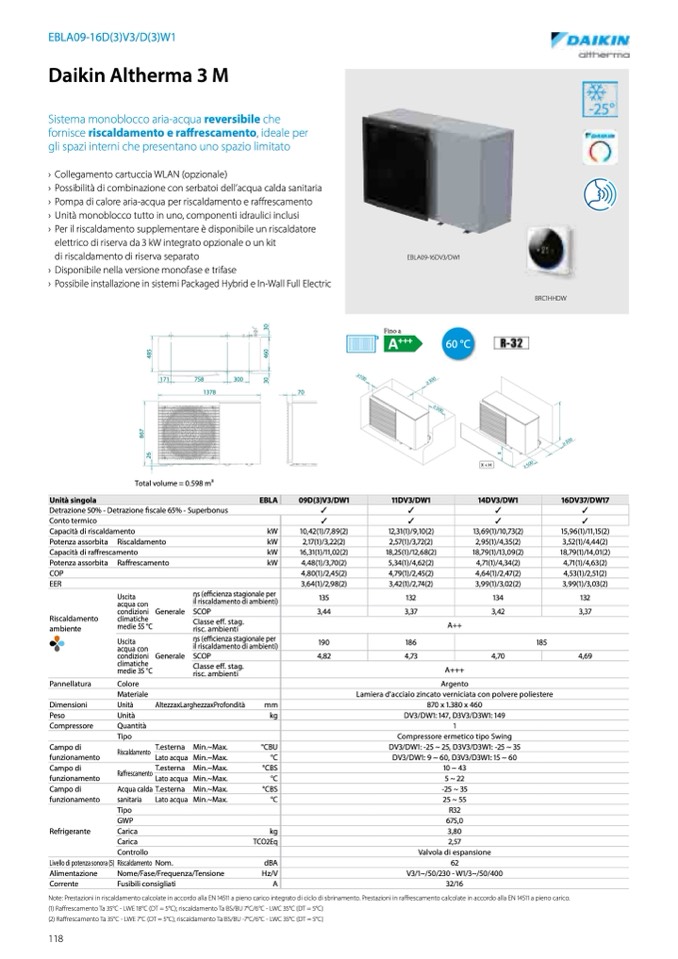 Note: Prestazioni in riscaldamento calcolate in accordo alla EN 14511 a pieno carico integrato di ciclo di sbrinamento. Prestazioni in raffrescamento calcolate in accordo alla EN 14511 a pieno carico.