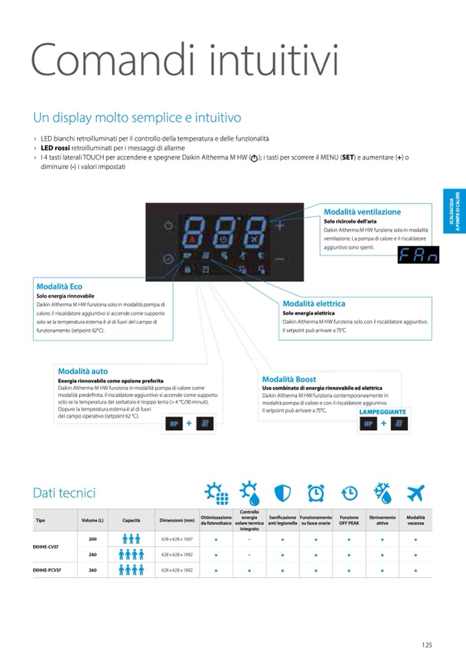 I 4 tasti laterali TOUCH per accendere e spegnere Daikin Altherma M HW (