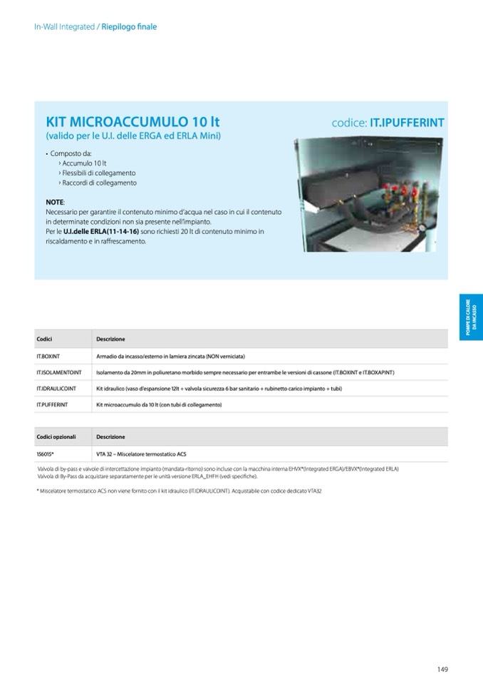 * Miscelatore termostatico ACS non viene fornito con il kit idraulico (IT.IDRAULICOINT). Acquistabile con codice dedicato VTA32