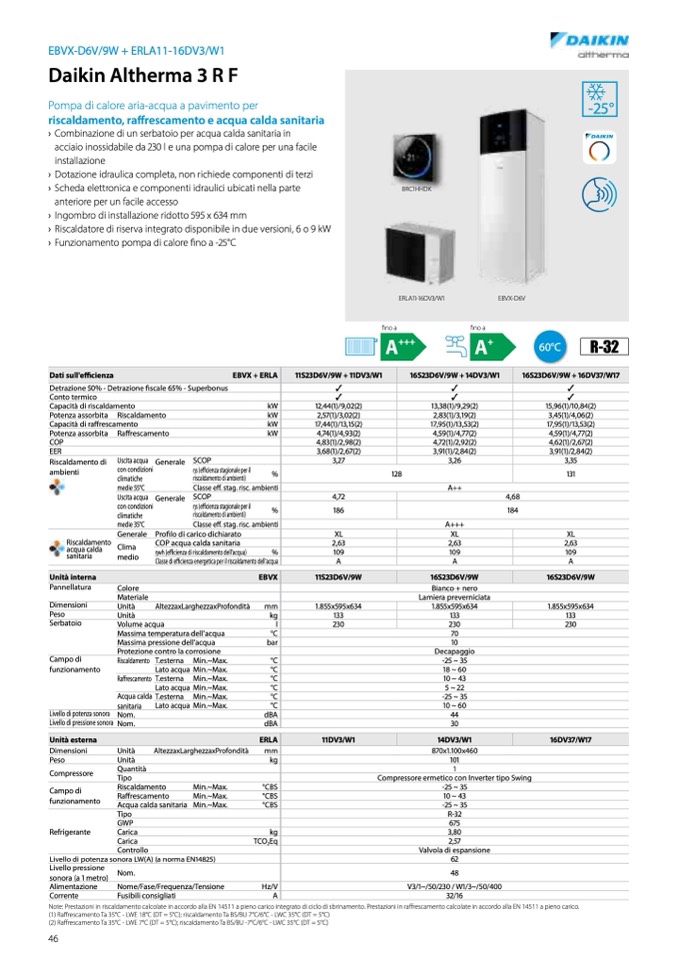 Note: Prestazioni in riscaldamento calcolate in accordo alla EN 14511 a pieno carico integrato di ciclo di sbrinamento. Prestazioni in raffrescamento calcolate in accordo alla EN 14511 a pieno carico.