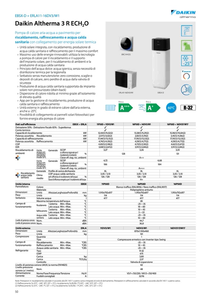 Note: Prestazioni in riscaldamento calcolate in accordo alla EN 14511 a pieno carico integrato di ciclo di sbrinamento. Prestazioni in raffrescamento calcolate in accordo alla EN 14511 a pieno carico.