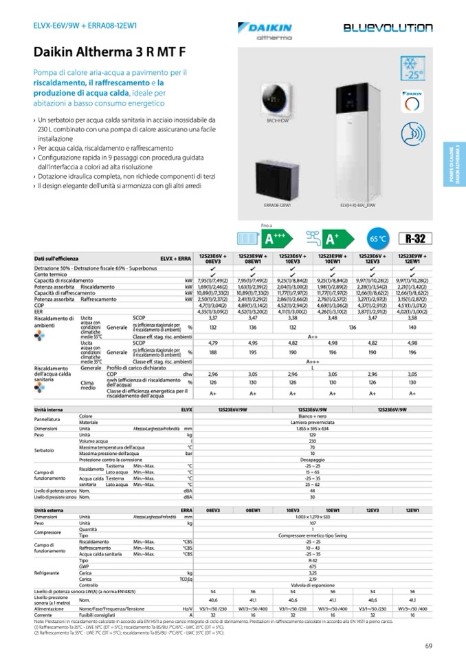 (2) Raffrescamento Ta 35°C - LWE 7°C (DT = 5°C); riscaldamento Ta BS/BU -7°C/6°C - LWC 35°C (DT = 5°C).