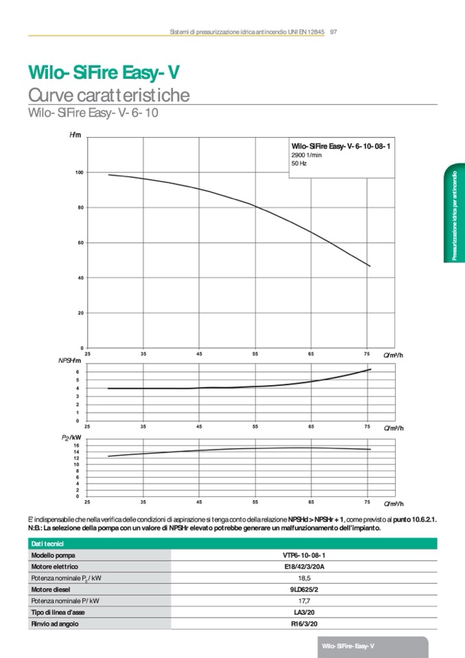 N:B.: La selezione della pompa con un valore di NPSHr elevato potrebbe generare un malfunzionamento dell’impianto.