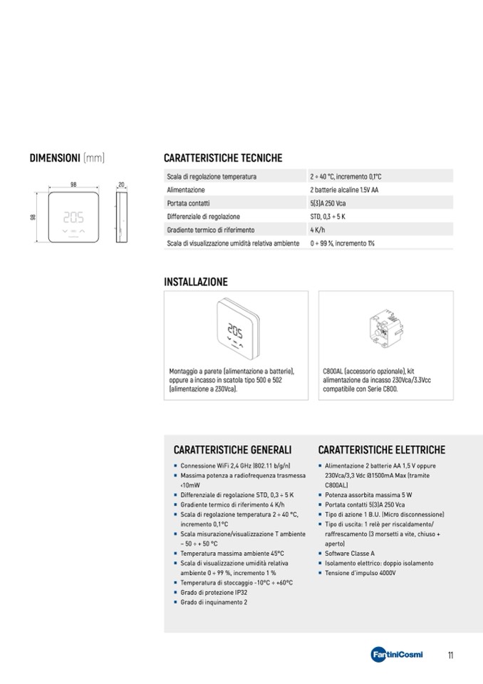 2 ÷ 40 °C, incremento 0,1°C