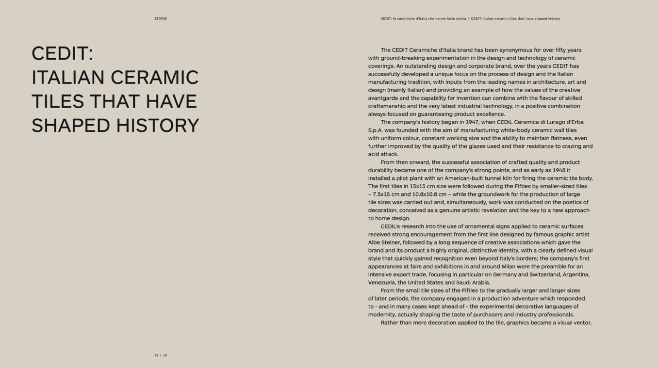 The CEDIT Ceramiche d’Italia brand has been synonymous for over fifty years