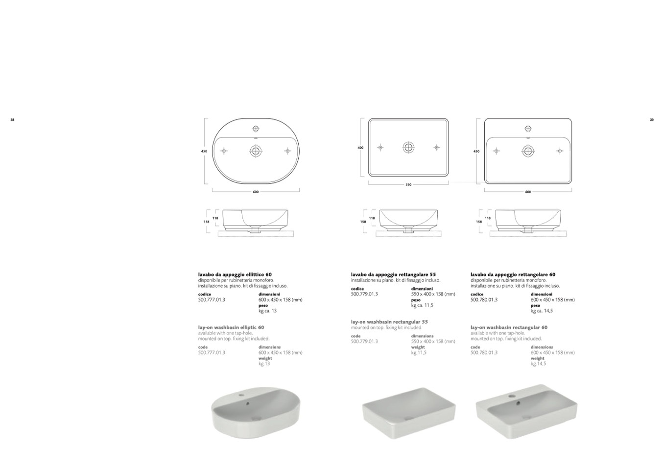lay-on washbasin elliptic 60