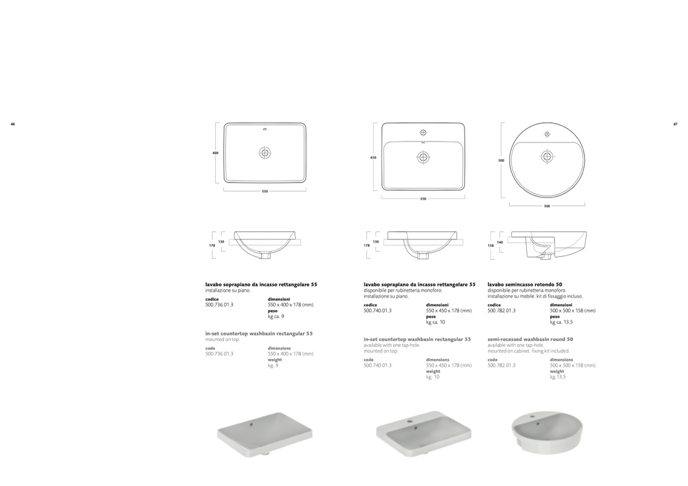 lavabo soprapiano da incasso rettangolare 55