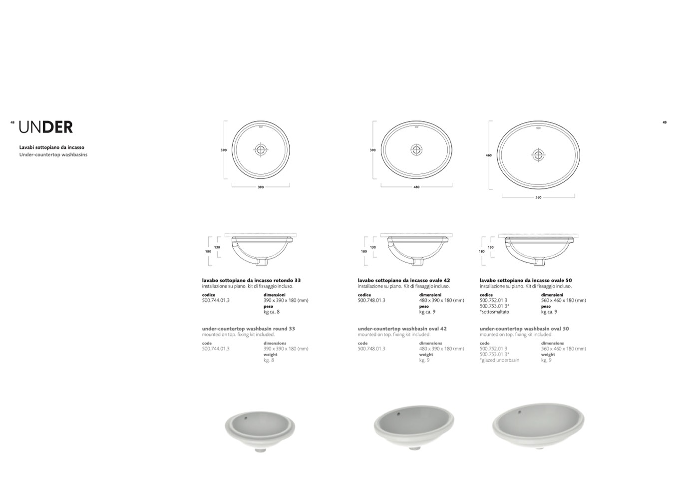 lavabo sottopiano da incasso ovale 42