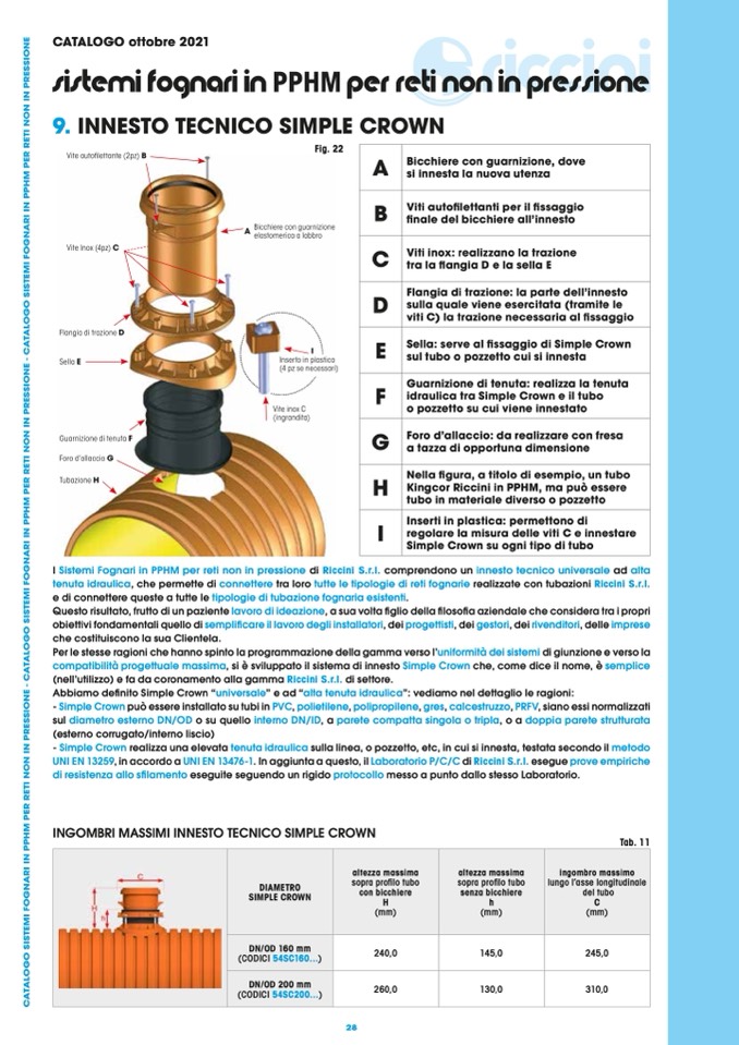 tenuta idraulica, che permette di connettere tra loro tutte le tipologie di reti fognarie realizzate con tubazioni Riccini S.r.l.