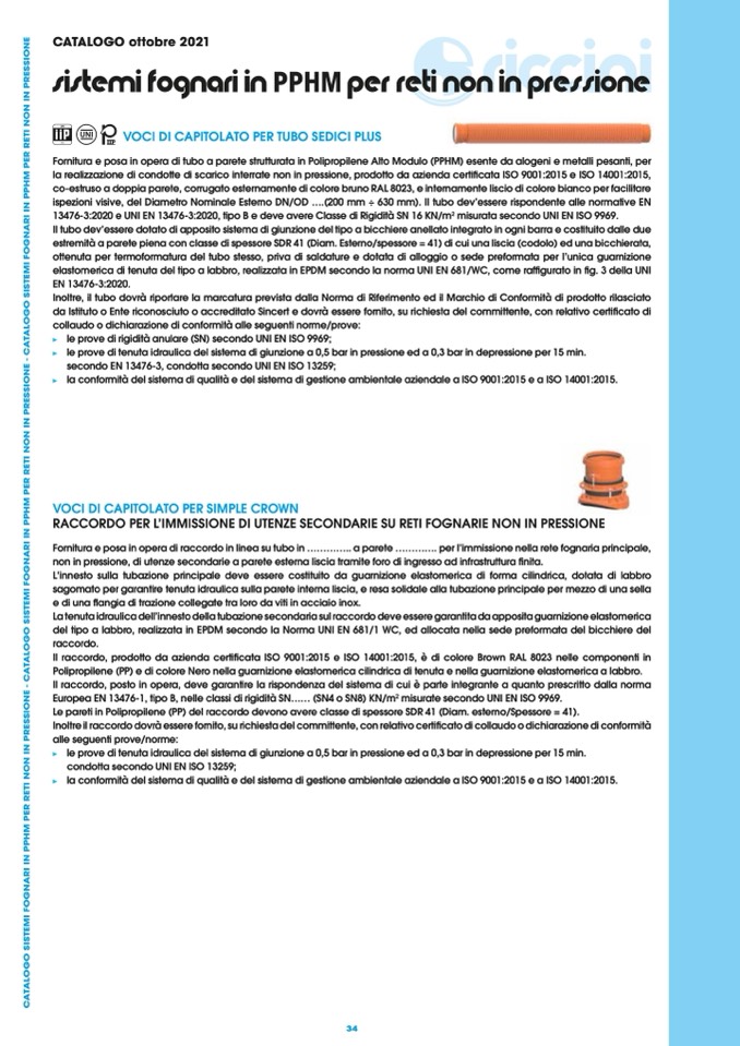 VOCI DI CAPITOLATO PER TUBO SEDICI PLUS
