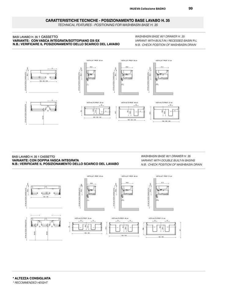 TECHNICAL FEATURES - POSITIONING FOR WASHBASIN BASE H. 35