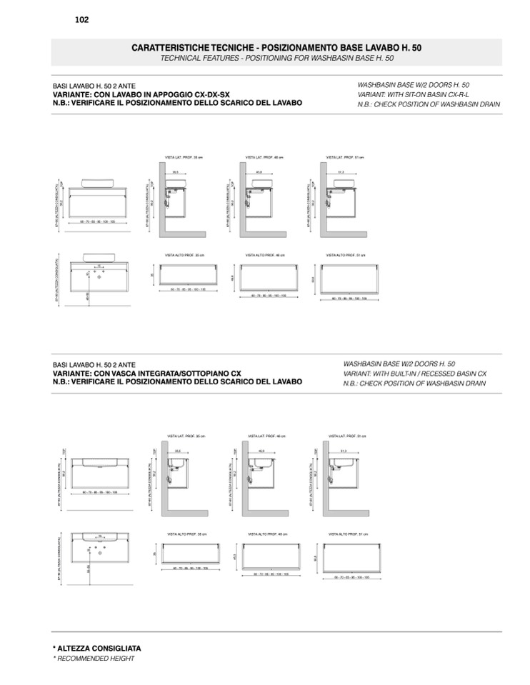 TECHNICAL FEATURES - POSITIONING FOR WASHBASIN BASE H. 50