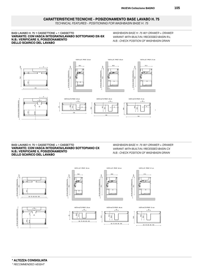 BASI LAVABO H. 75 1 CASSETTONE + 1 CASSETTO