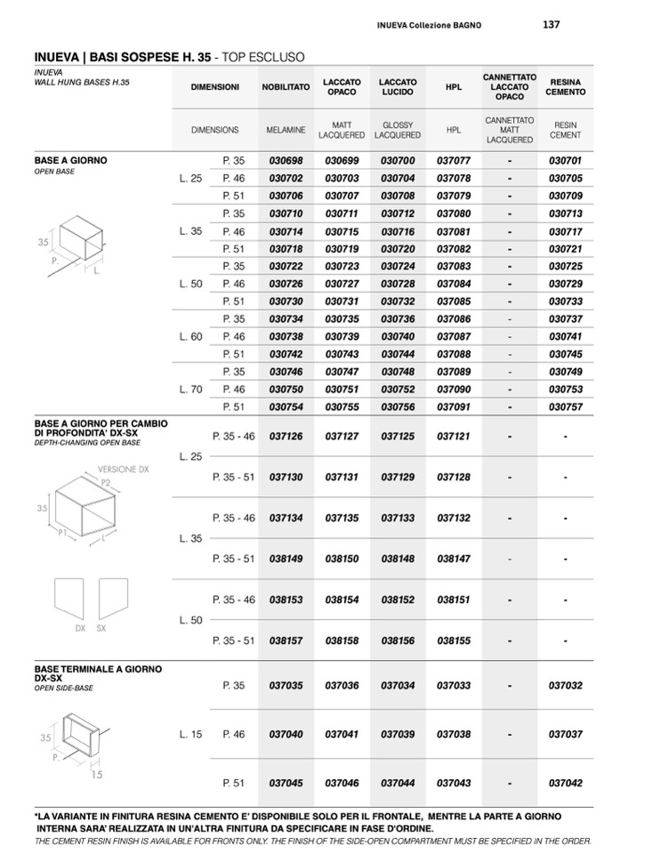 *LA VARIANTE IN FINITURA RESINA CEMENTO E’ DISPONIBILE SOLO PER IL FRONTALE, MENTRE LA PARTE A GIORNO