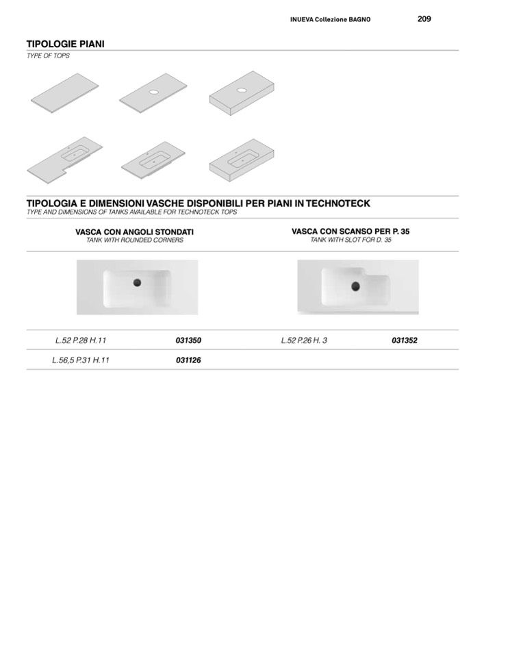 TYPE AND DIMENSIONS OF TANKS AVAILABLE FOR TECHNOTECK TOPS