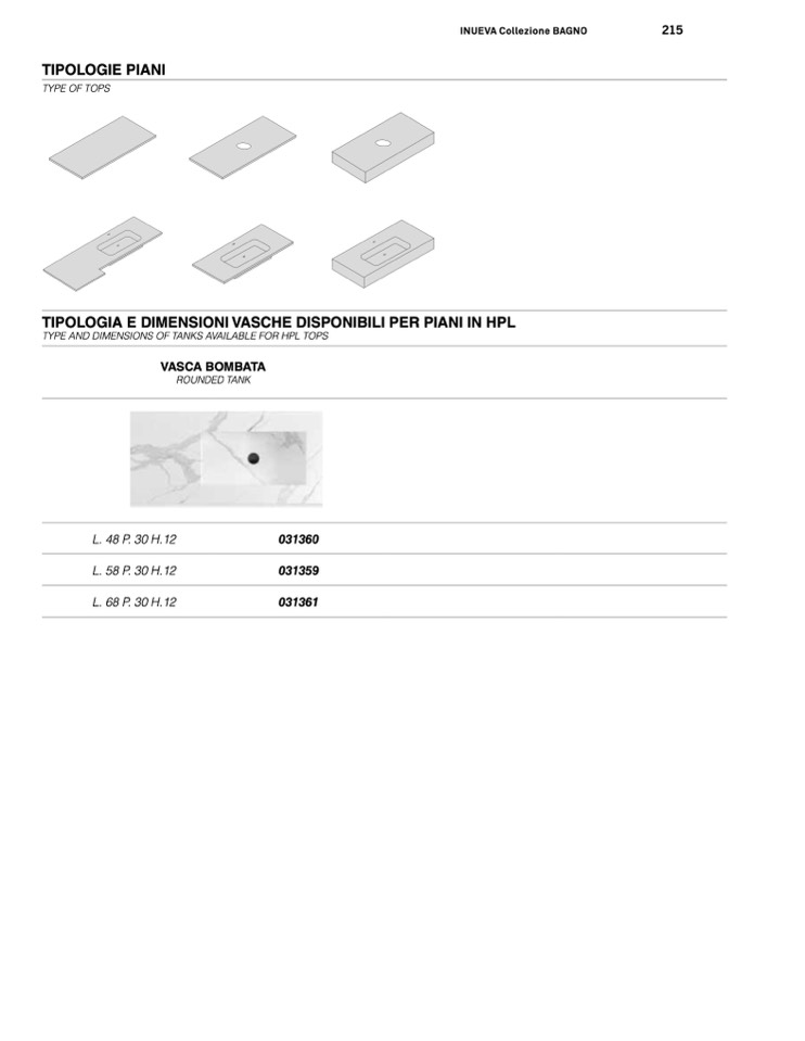 TYPE AND DIMENSIONS OF TANKS AVAILABLE FOR HPL TOPS